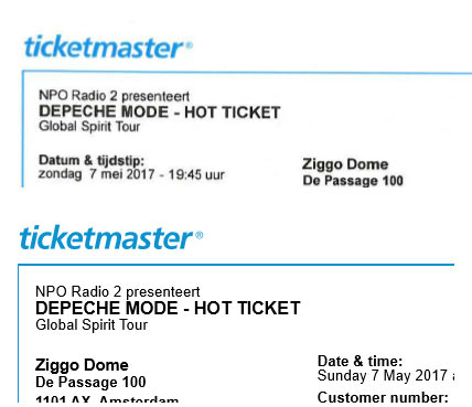 なんでささいな違いを感じられたかというと、最近、別のミュージシャンの正規チケットをチケットマスターから買ったことあるからです。ダウンロードしたの残してあったので比べてみた。