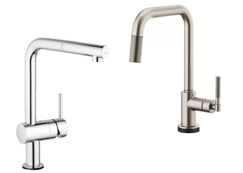 そこで頭を切り替えて選びなおしたのがL型フォルムの水栓。Brizo ってメーカーで2点が候補。完全なL字型タイプのMINTAとコの字(?)タイプのLITZEのどちらかに決める予定。