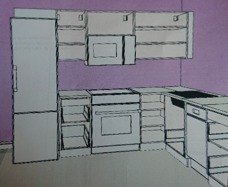 2:キャビネットをVOXTORPの濃いめのウォルナット色をやめて、ホワイトに変更。キッチン辺りは窓がないので昼間はどんより暗い。ウォルナット色のキャビネット入れると更に暗くなることを避けてホワイトに変更。白ならばIKEAで一番高価なモデルであるVOXTORPシリーズである必要はない。もっと安いモデルでもいい。これで見積りがガクッと下がりました。(キャビネット扉についてはまた後で)