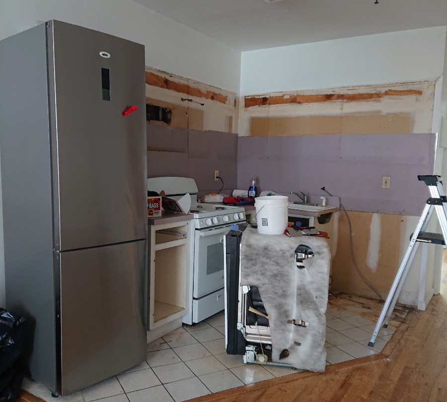 メモリアルデー明けの6月1日にコントラクターのJが解体開始。食洗機の引き取りに備えて取り外しもお願いしていたら、手こずったらしく翌日も作業していたという。