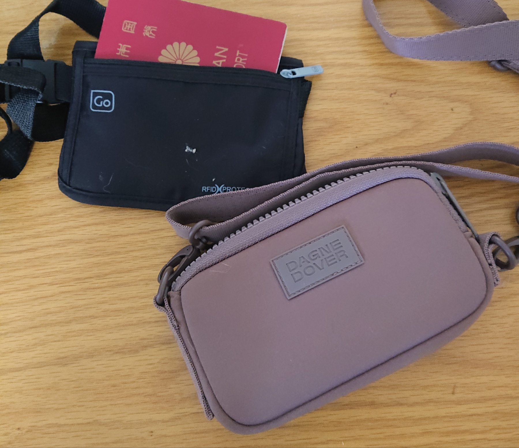 パスポート腹巻!これを外出中は服の下に付けて、胸の下あたりにくるように下げる。絶対に目を離さないようにする!