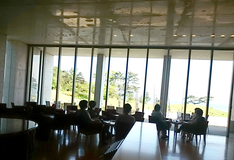 このあと、シャトルバスでミュージアム棟の見逃した作品を鑑賞。、、とはいっても、昨晩のツアーでほとんど見てたようで、30分もかからず終了。和食レストランをチラリと見たら、杉本博の水平線シリーズの作品と瀬戸内海を眺められる場所で、こじんまりして新聞も置いてあって、日本人ならココのほうが寛げそう。ここで朝食でも良かったかも。どっちみちミュージアム棟に来たのだし。